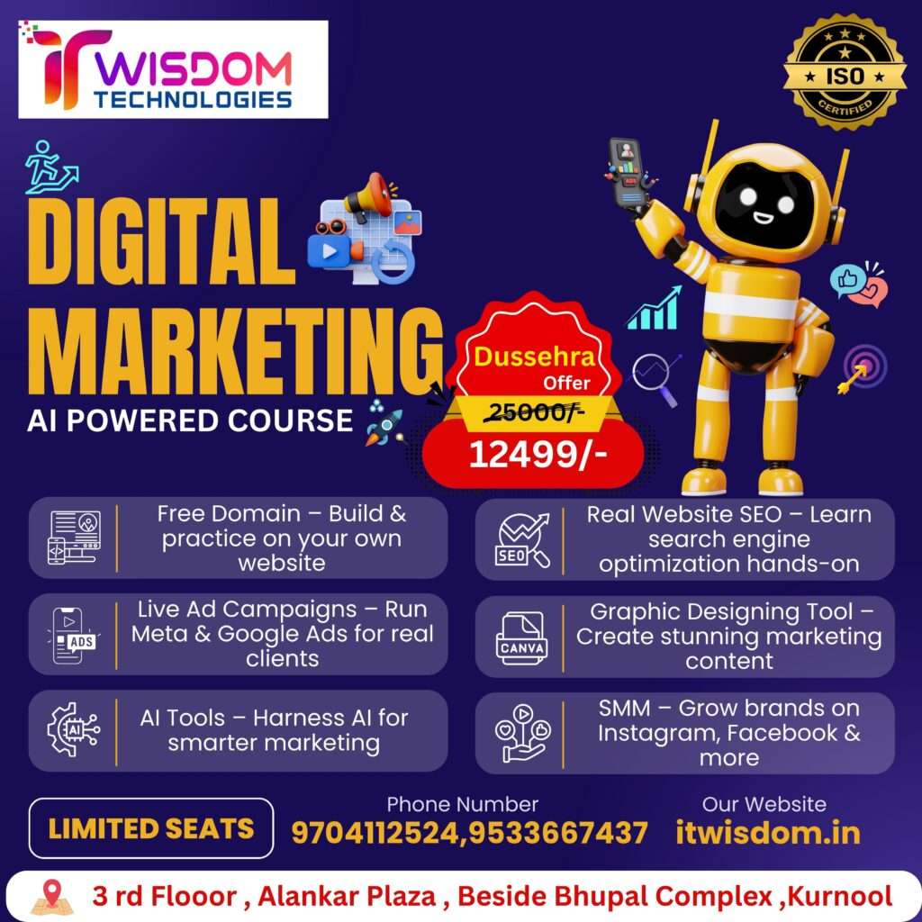 IT Wisdom Technologies is a well-established computer training and IT skills institute located in Kurnool, Andhra Pradesh. The institute has been providing quality technical education since 2010, helping individuals build practical IT skills for career growth and job readiness. Learning IT Wisdom Technologies follows a practical, career-oriented training model. Instead of focusing only on theory, the institute emphasizes real-time practice, hands-on exercises, and project-based learning. This approach helps students understand how concepts are applied in real working environments. Learners gain confidence not just in using tools and software, but also in solving real-world problems.